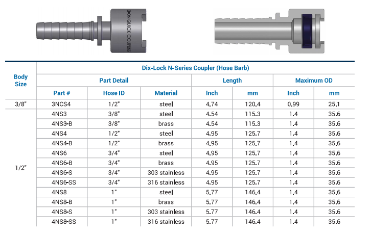 產品名稱:Dix-Lock? N-Series Interchange Female Head Coupler Standard Hose Barb