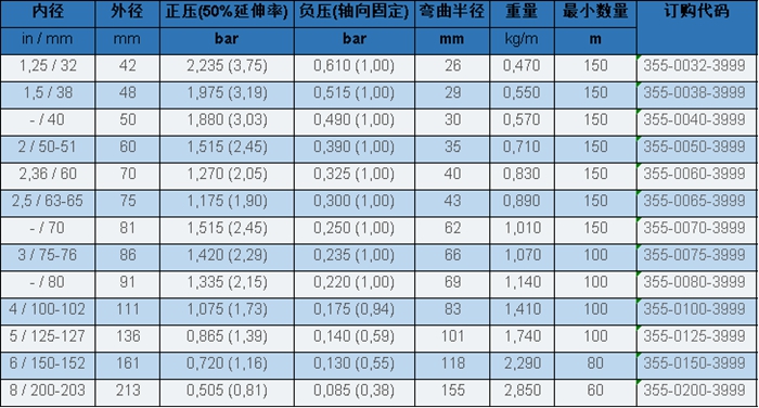 重型,高抗磨損,耐壓及耐真空性加強(qiáng),良好的低溫柔性,良好的耐化學(xué)性