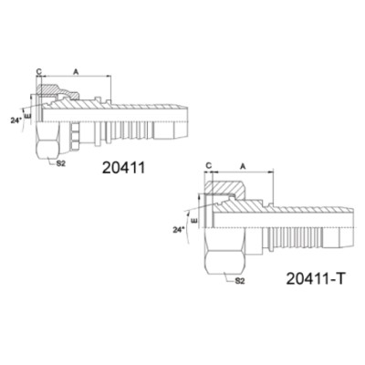 注:1.表中代號用于編織軟管。 2.如需用于纏繞軟管代號改為 20412-XX-XX |