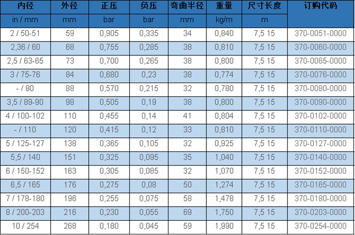 織物加強,超輕型,高彎曲性+壓縮比4:1,耐磨損,良好的低溫柔性