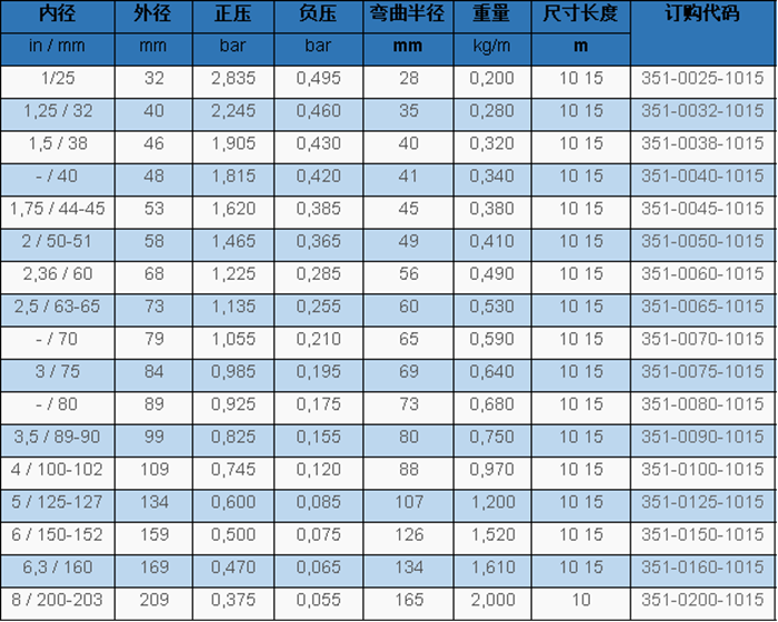 結(jié)構(gòu):彈性鋼絲牢牢地嵌入管壁內(nèi),管壁專利特殊耐高溫聚氨酯HT-PUR (Pre-PUR®),管壁厚度約為1.0毫米。