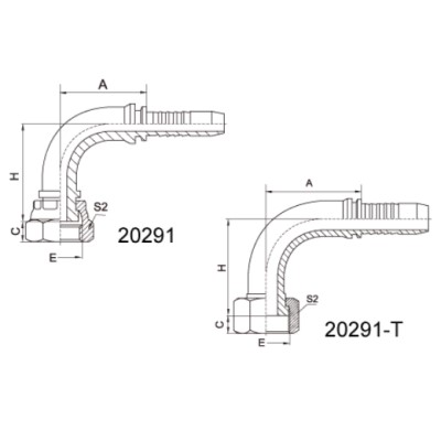注:1.表中代號(hào)用于編織軟管。 2.如需用于纏繞軟管代號(hào)改為 20292-XX-XX |