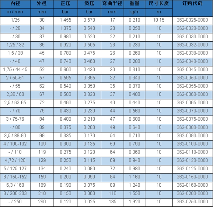 柔性軟管/用于氣體、灰塵、粉體和纖維的軟管輸送,食品工業(yè),制藥工業(yè):食品,制藥,干燥食品輸送,如:大米、麥片、糖、奶粉、各種粉末、咖啡、茶葉、谷物類、面粉、冷凍食品,攪拌機(jī),干燥機(jī),包裝機(jī),散裝-裝卸,研磨機(jī),煙草行業(yè):卷煙機(jī),煙草輸送,電鍍回收,化學(xué)工業(yè):化學(xué)蒸汽,裝載臂蒸汽回流軟管,油漆蒸汽,噴霧回收