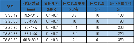 特性:帶有SUS316加強線圈和特殊加強構(gòu)造,定型性出色,適用于壓送和真空輸送