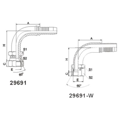 注:1.表中代號(hào)用于編織軟管。 2.如需用于纏繞軟管代號(hào)改為 29692-XX-XX. |