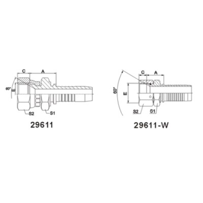 注:1.表中代號(hào)用于編織軟管。 2.如需用于纏繞軟管代號(hào)改為 29612-XX-XX. |