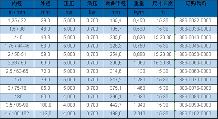 內(nèi)表面電阻 < 10? Ω,依據(jù)ATEX 2014/34/EU (1999/92/EC)和德國TRGS 727:抽吸可燃性粉塵(22區(qū)內(nèi)),用于輸送非易燃性液體,1區(qū)和2區(qū)內(nèi)使用(氣體),符合 RoHS 規(guī)定