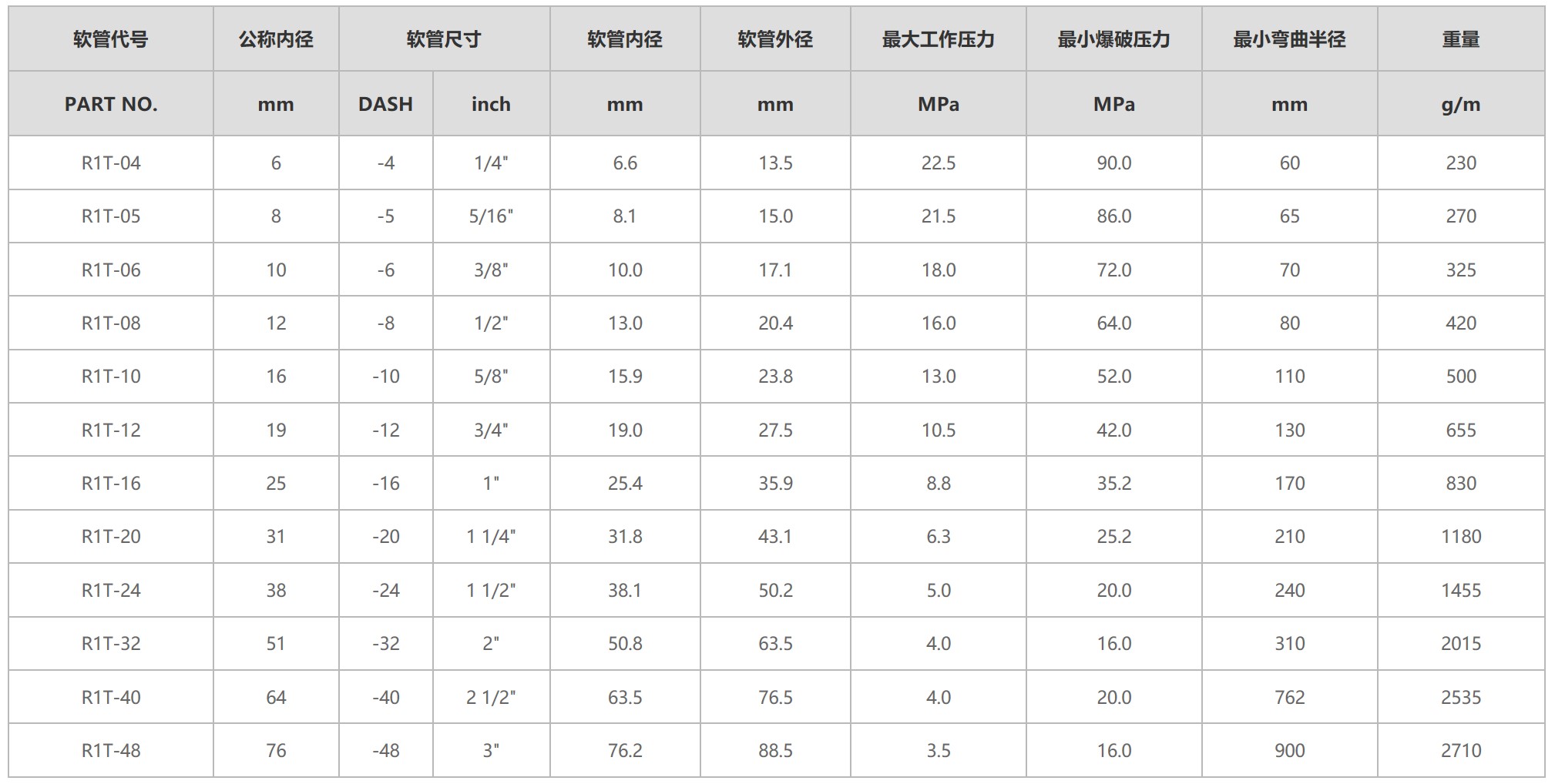 石油基液壓油, 水乙二醇液壓油, 潤(rùn)滑油, 空氣和水。用于1.7 MPa以上的壓縮氣體場(chǎng)合,軟管需針刺。